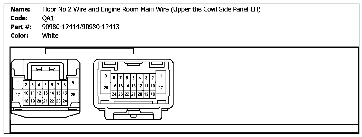 QA1 (Floor No.2 Wire And Engine Room Main Wire (Upper The Cowl Side Panel LH)):