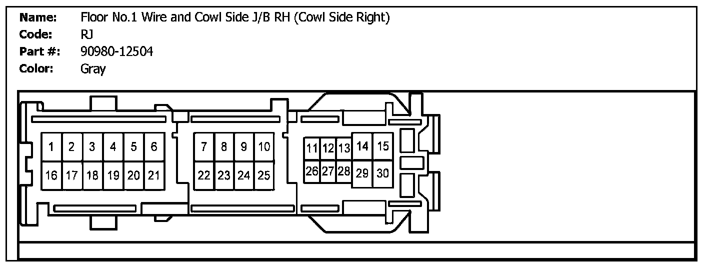 RJ (Floor No.1 Wire And Cowl Side J/B RH (Cowl Side Right)):