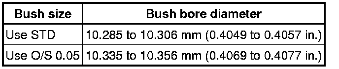 If the bush bore diameter of the cylinder head is greater than 10.356 mm (0.4077 in.), replace the cylinder head.