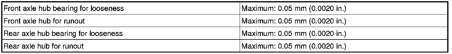 SERVICE SPECIFICATIONS: AXLE: SERVICE DATA