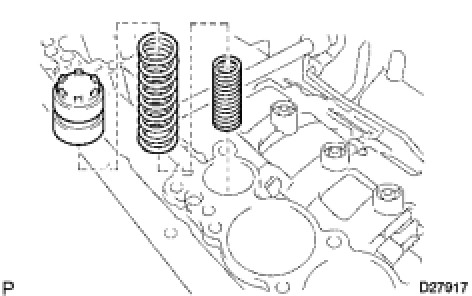 (a) Remove the B-1 accumulator valve and the 2 springs.