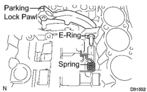 (a) Pull out the parking lock pawl shaft from the front side, then remove the lock pawl and the spring.