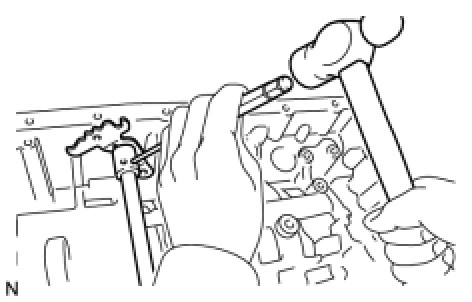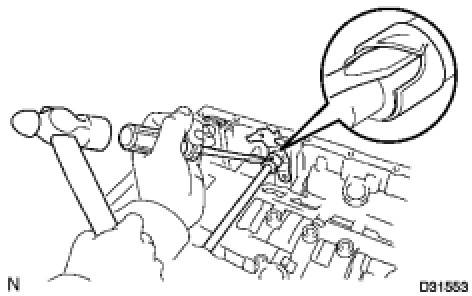 (b) Using a pin punch and a hammer, drive out the spring pin.