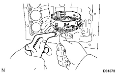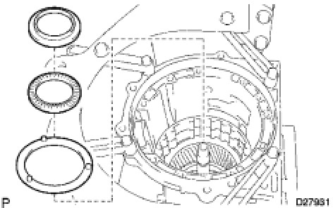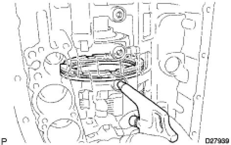 (a) Remove the center planetary gear assembly, the planetary sun gear and the No. 4 thrust bearing race from the transmission case.