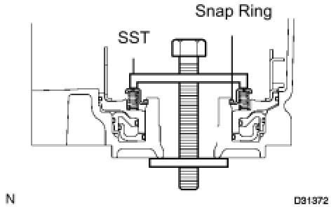 (a) Using a screwdriver, remove the snap ring from the transmission case.