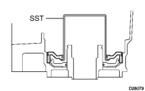 (a) Place SST on the 1st and reverse brake return spring sub-assembly and compress the brake return spring.