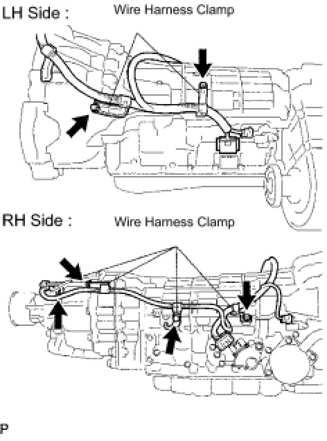 (a) Install the wire harness clamps to the automatic transmission assembly with the 4 bolts.