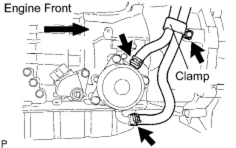 (b) Install the 2 water by-pass hoses to the transmission assembly.