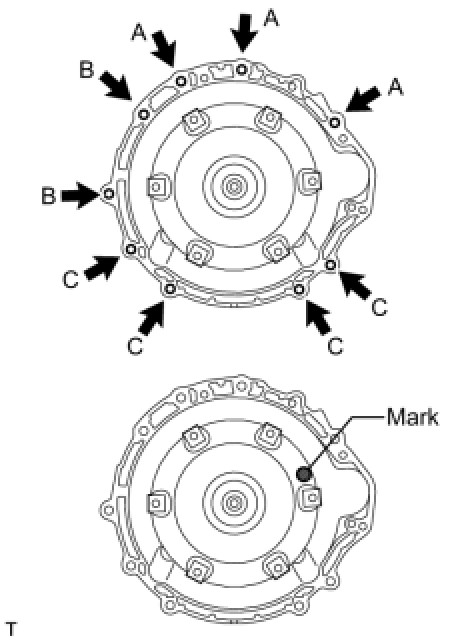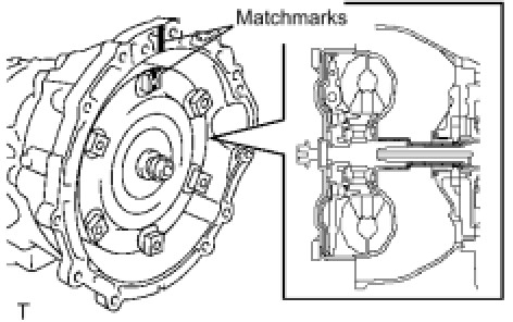NOTE: Do not push on the torque converter when aligning the matchmarks.