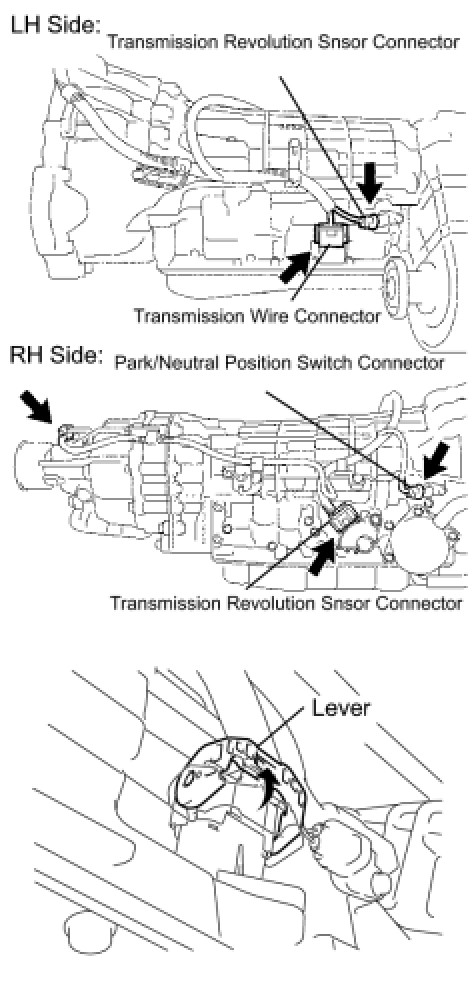 (a) Connect the park/neutral position switch connector, transmission wire connector, and 2 transmission revolution sensor connectors.