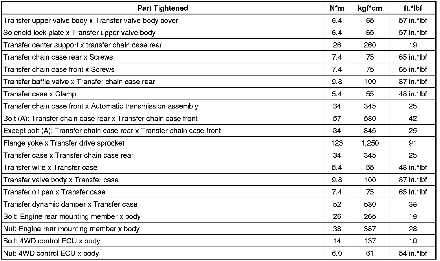SERVICE SPECIFICATIONS: UF1AE TRANSFER: TORQUE SPECIFICATIONS