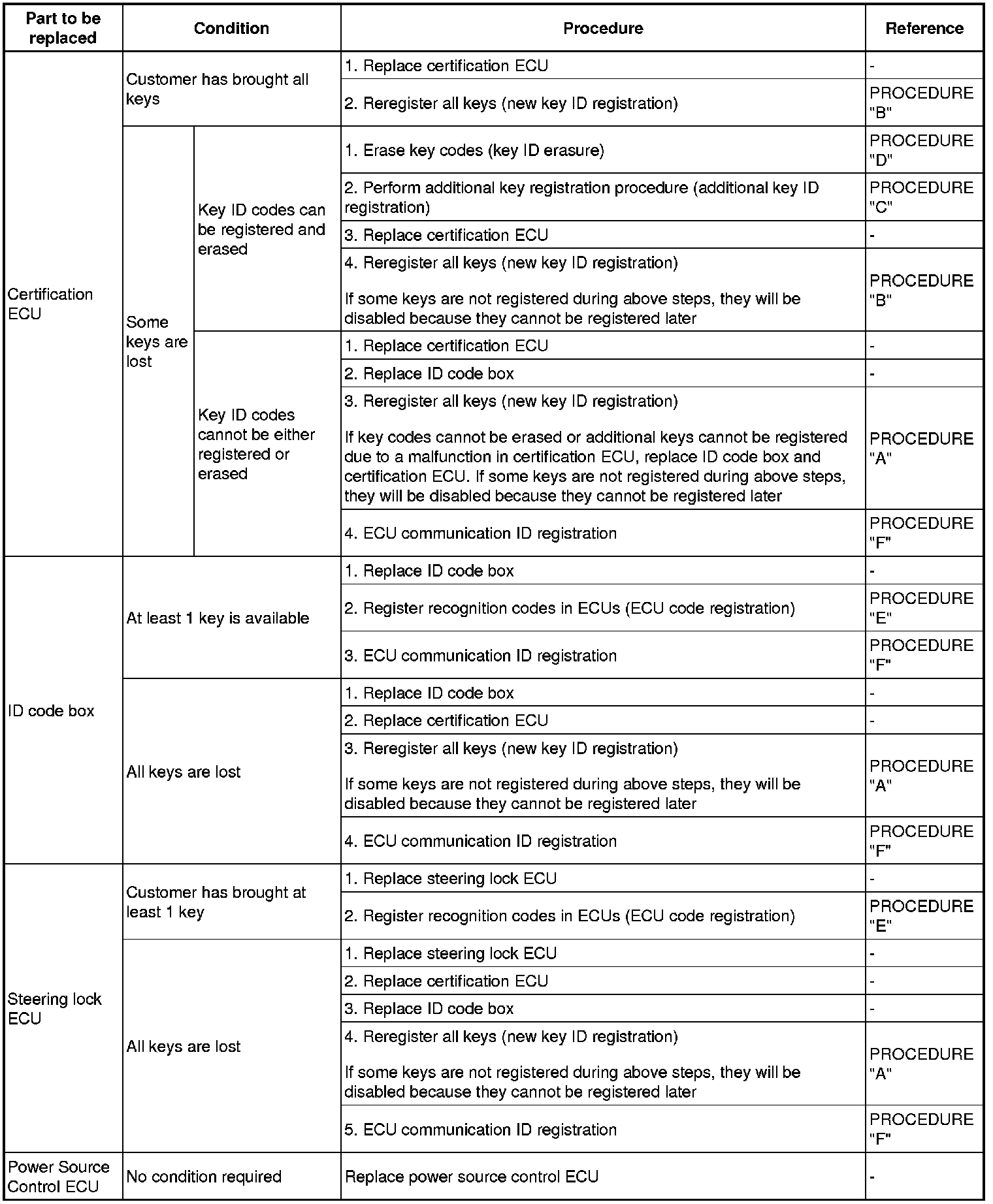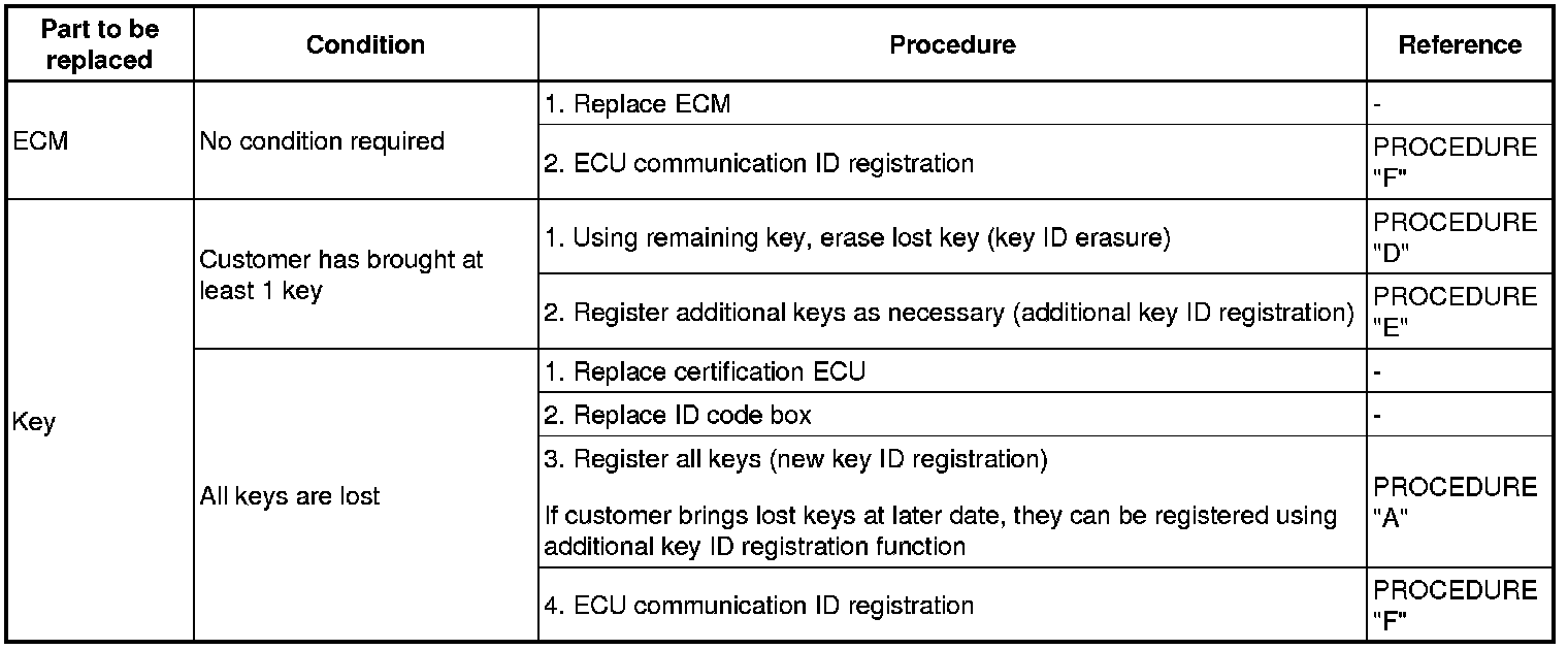 - Code registration is needed when the certification ECU, ID code box, steering lock ECU or key is replaced with a new one.