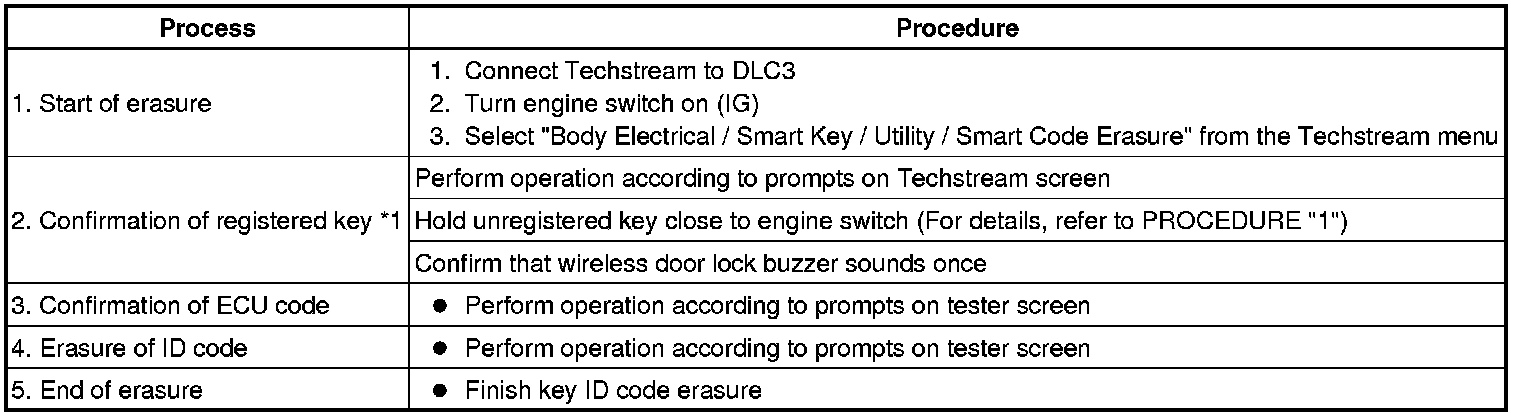 - *1: Perform this process for one of the keys registered for the vehicle. Finish the procedure within 30 seconds. If the procedure has not been finished within the specified time, perform erasure procedures from process 1 again.