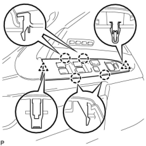 (b) Engage the 2 clips and 4 claws, and install the power window regulator master switch assembly.