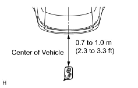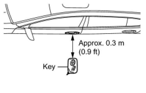 (2) Step 2: When the electrical key is brought within 0.7 to 1.0 m (2.3 to 3.3 ft) of the vehicle, check that the system enters unlock standby mode.