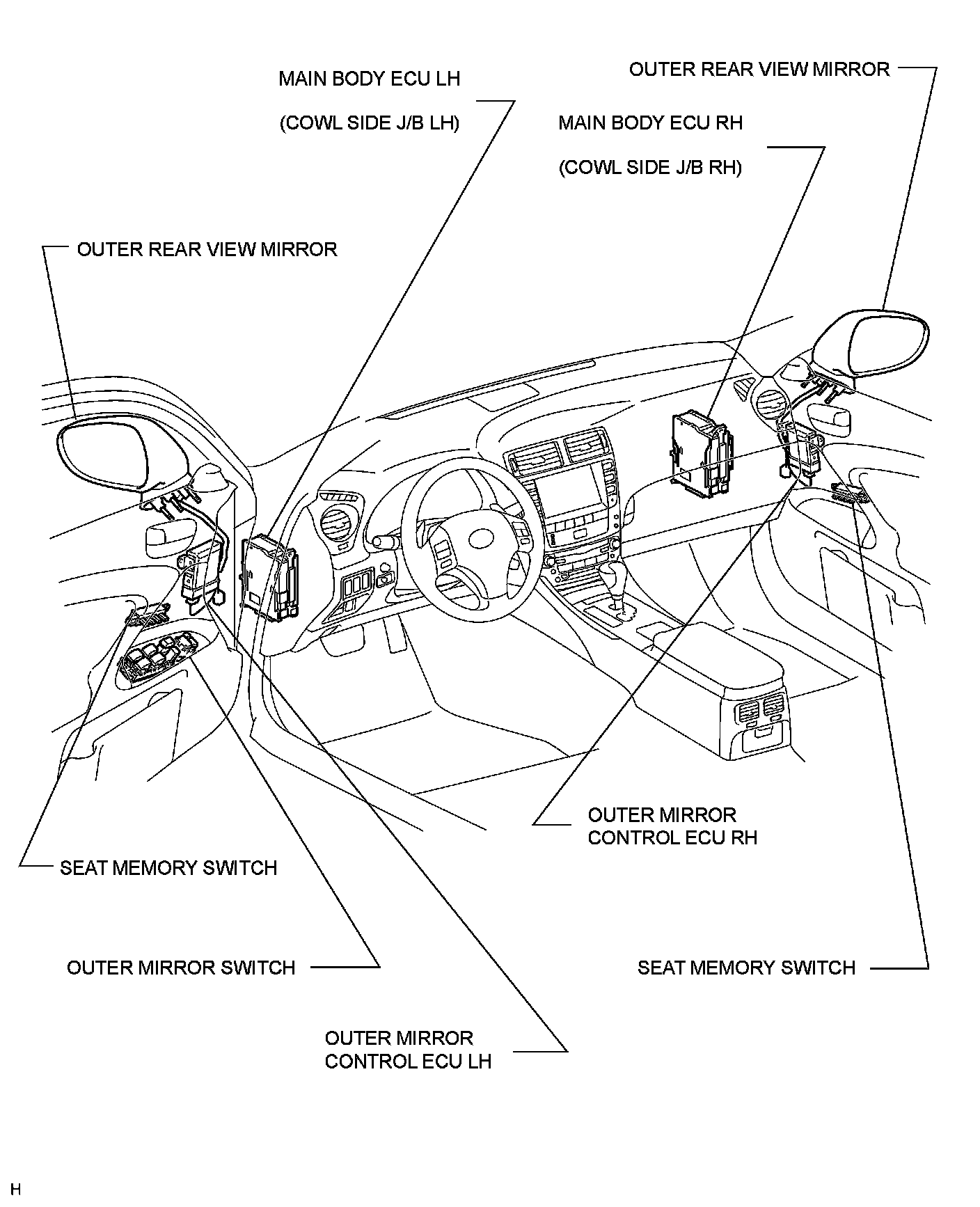 MIRROR: POWER MIRROR CONTROL SYSTEM (w/ Memory): PARTS LOCATION