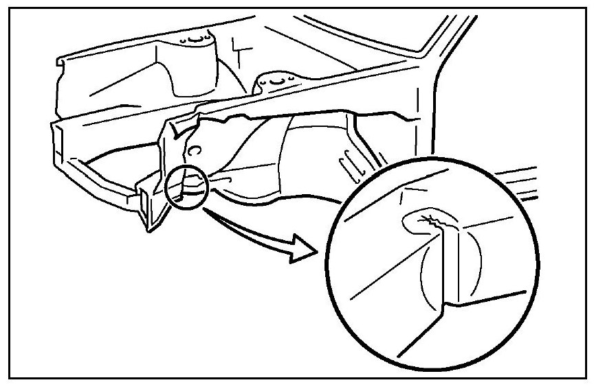 A sharp deformation angle on a panel that cannot be returned to its original shape by pulling or hammering is called a kink. Structural parts are designed to perform in their original shape. If parts are deformed in an accident, or if the deformed parts are repaired and reused, the parts may be unable to perform as intended. It is necessary to replace the part where the kink has occurred.