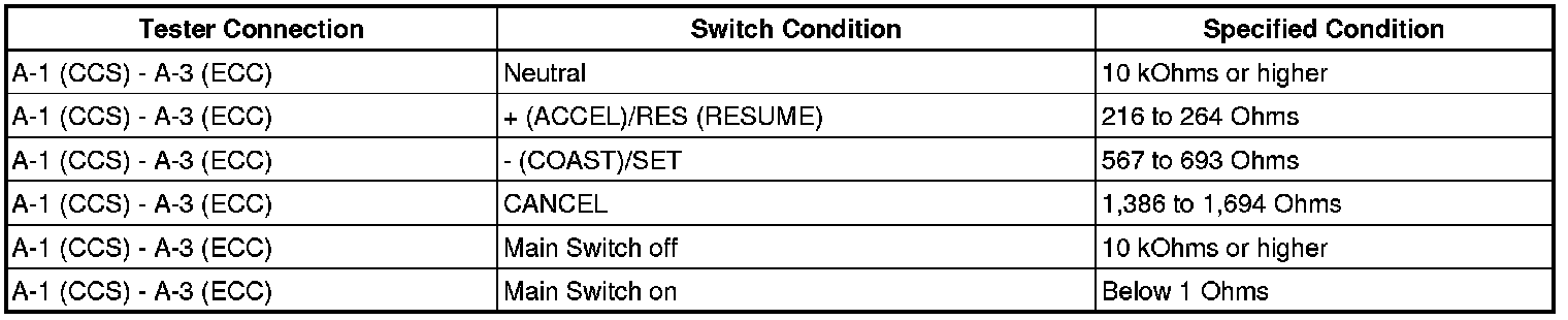 CRUISE CONTROL: CRUISE CONTROL SYSTEM: Cruise Control Switch Circuit