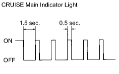 - If a malfunction occurs in the vehicle speed sensors, the stop light switch, or other related parts during cruise control driving, the ECU actuates AUTO CANCEL of the cruise control and blinks the CRUISE main indicator light. This indicator light informs the driver of the malfunction. At the same time, the malfunction is stored as a diagnostic trouble code.