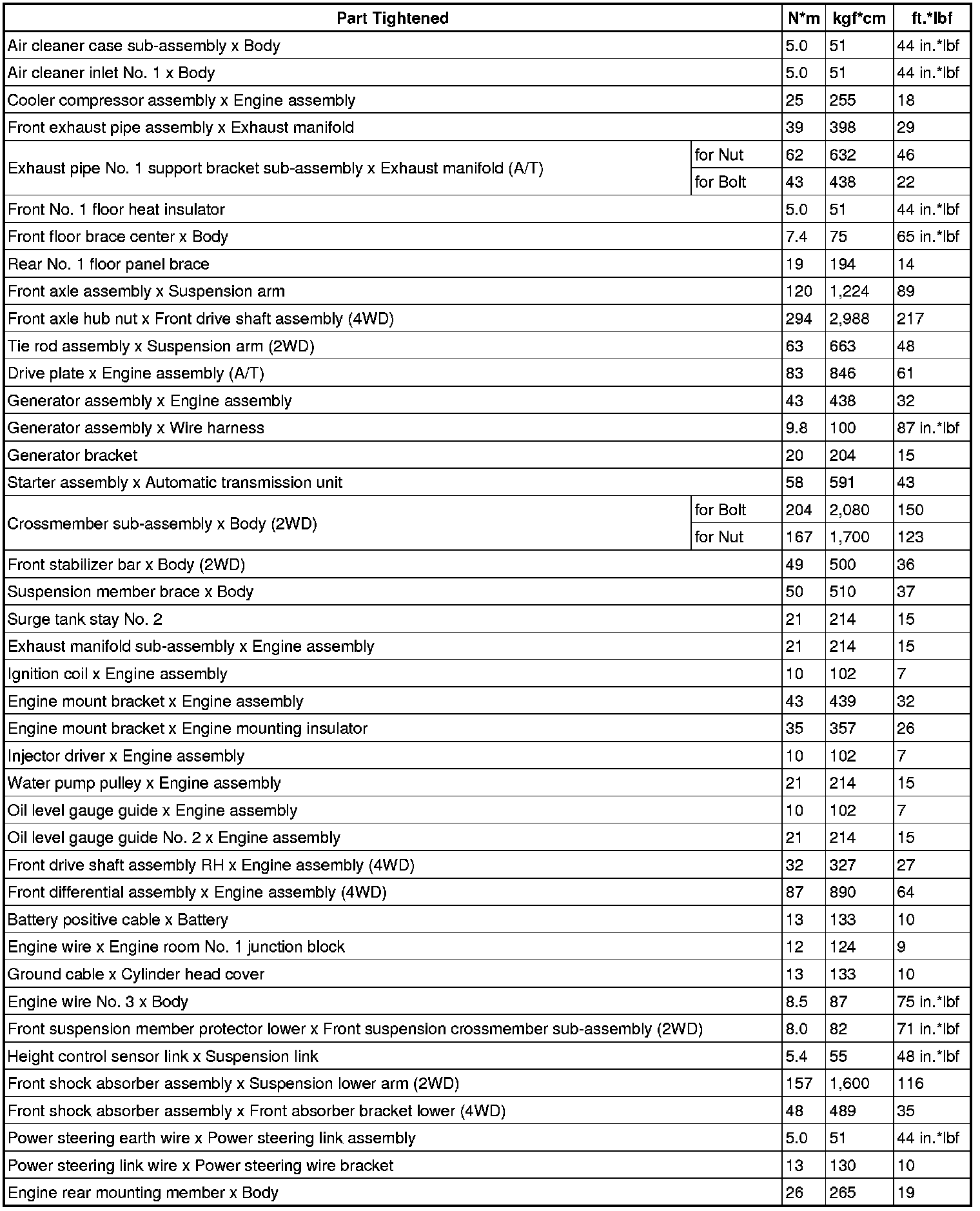 Torque Specifications