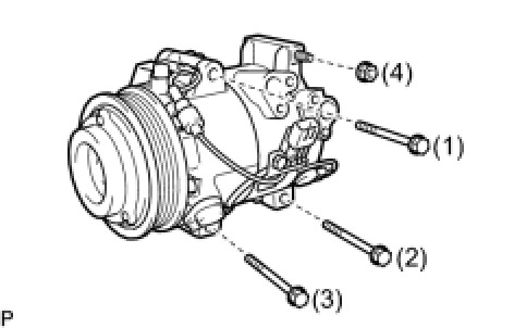 NOTE: Tighten the bolts in the order shown in the illustration to install the compressor and magnetic clutch.