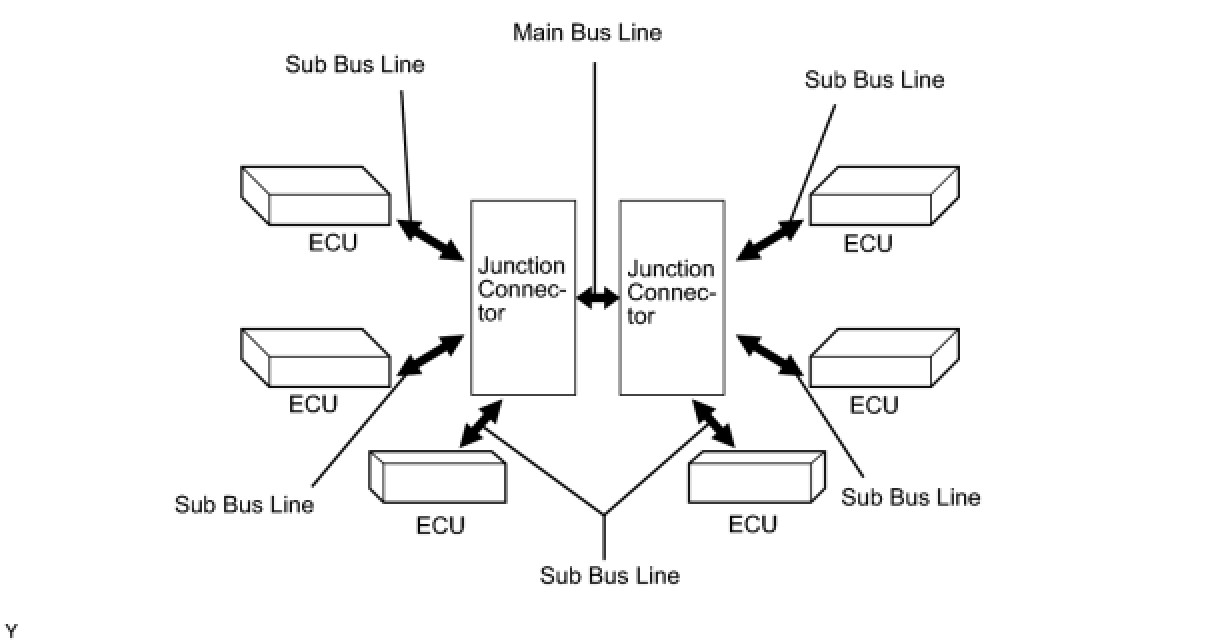 - The CAN uses the multi star style bus connection. The 2 junction connectors are connected with a main bus line. The junction connector extends a sub bus line and enables communication between all the connected ECUs.