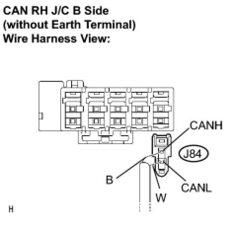 (a) Disconnect the CAN main bus line connector (J84) from the CAN RH J/C B side (without earth terminal).