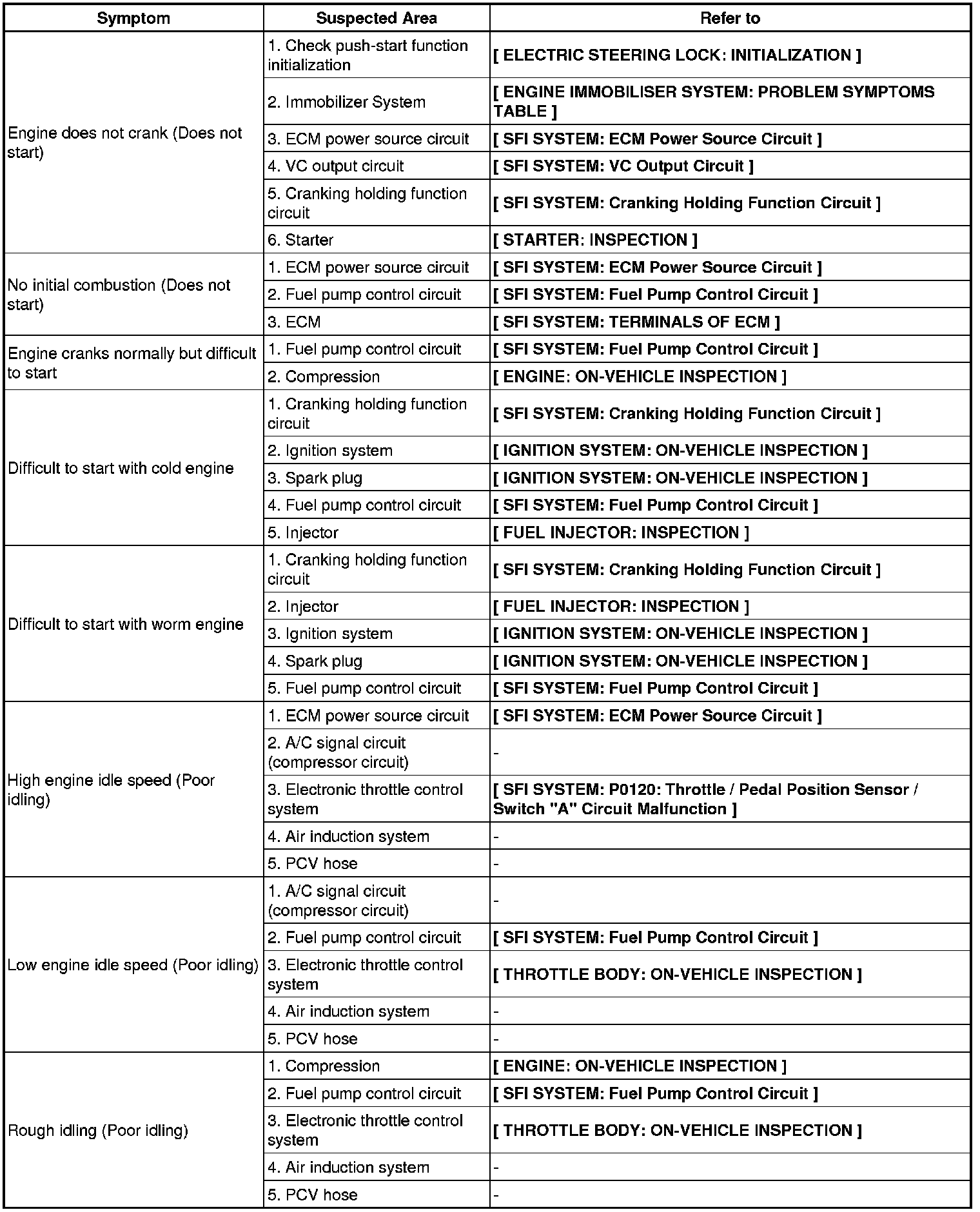 HINT: Use the table below to help determine the cause of the problem. The potential cases of the symptoms are listed in order of probability in the "Suspected area" column of the table. Check each symptom by checking the suspected areas in the order they are listed. Replace parts as necessary.