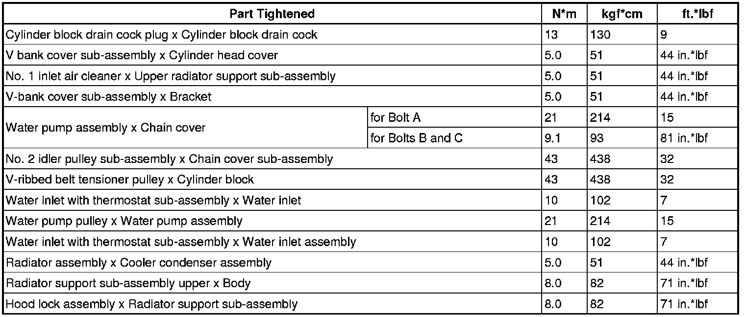 SERVICE SPECIFICATIONS: 4GR-FSE COOLING: TORQUE SPECIFICATIONS