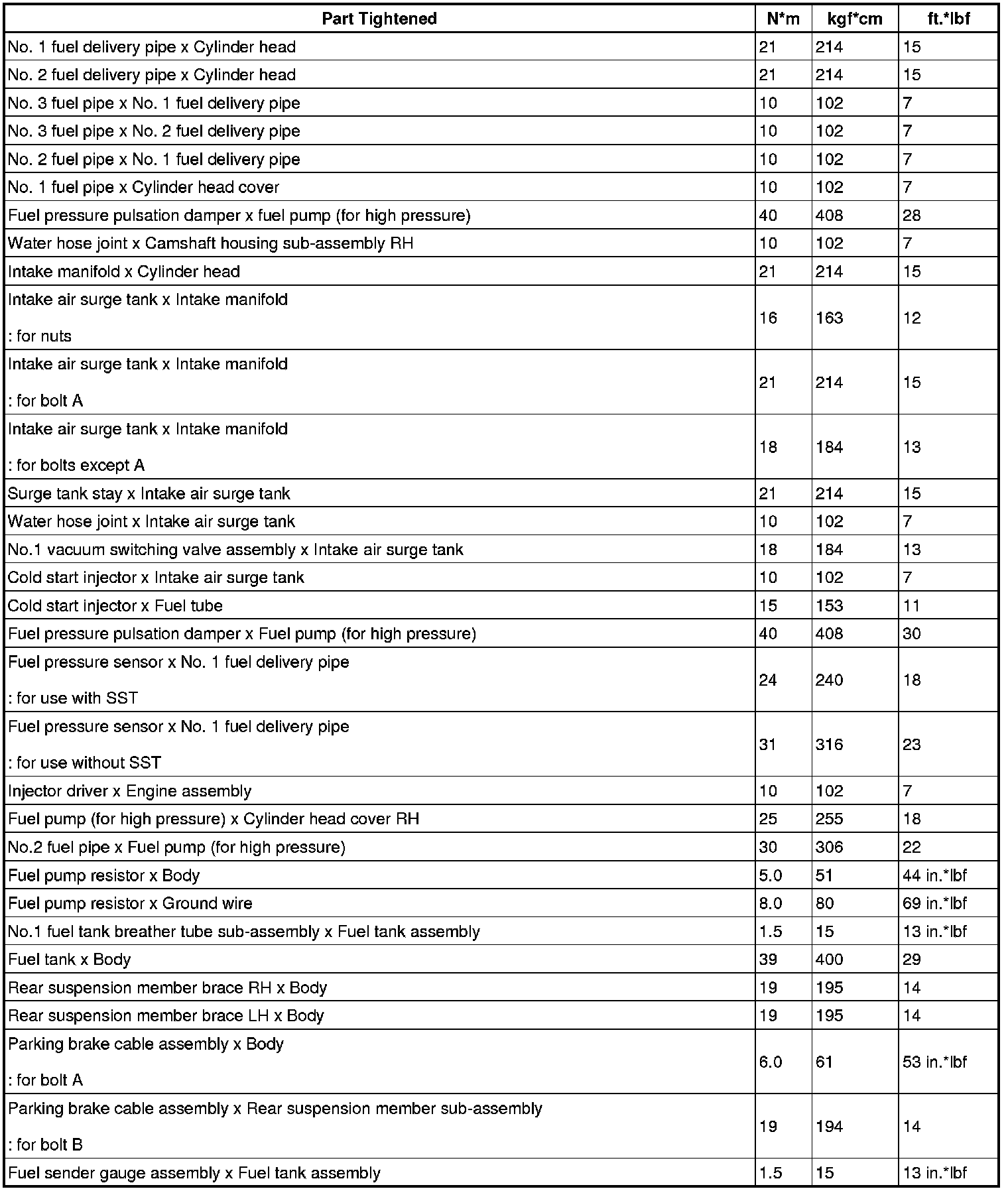 SERVICE SPECIFICATIONS: 4GR-FSE FUEL: TORQUE SPECIFICATIONS