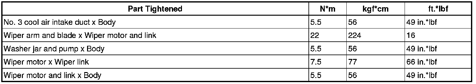 SERVICE SPECIFICATIONS: WIPER AND WASHER: TORQUE SPECIFICATIONS
