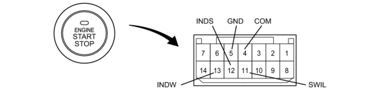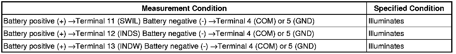 (b) Apply battery voltage between the terminals of the switch, and check the illumination condition of the switch.