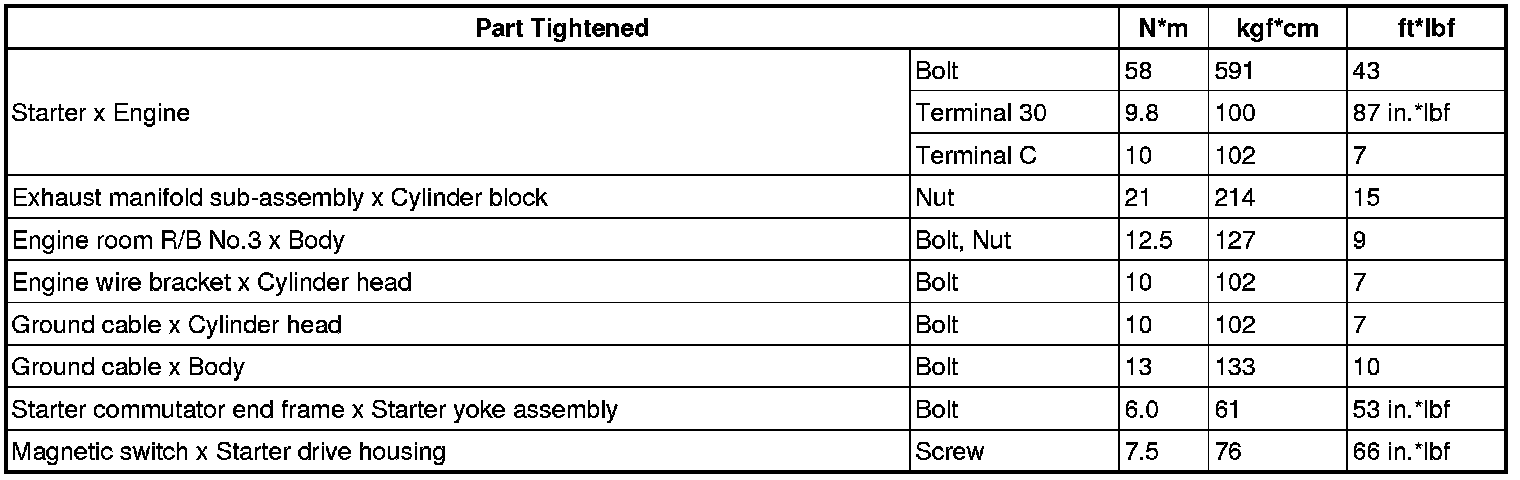 SERVICE SPECIFICATIONS: 4GR-FSE STARTING: TORQUE SPECIFICATIONS