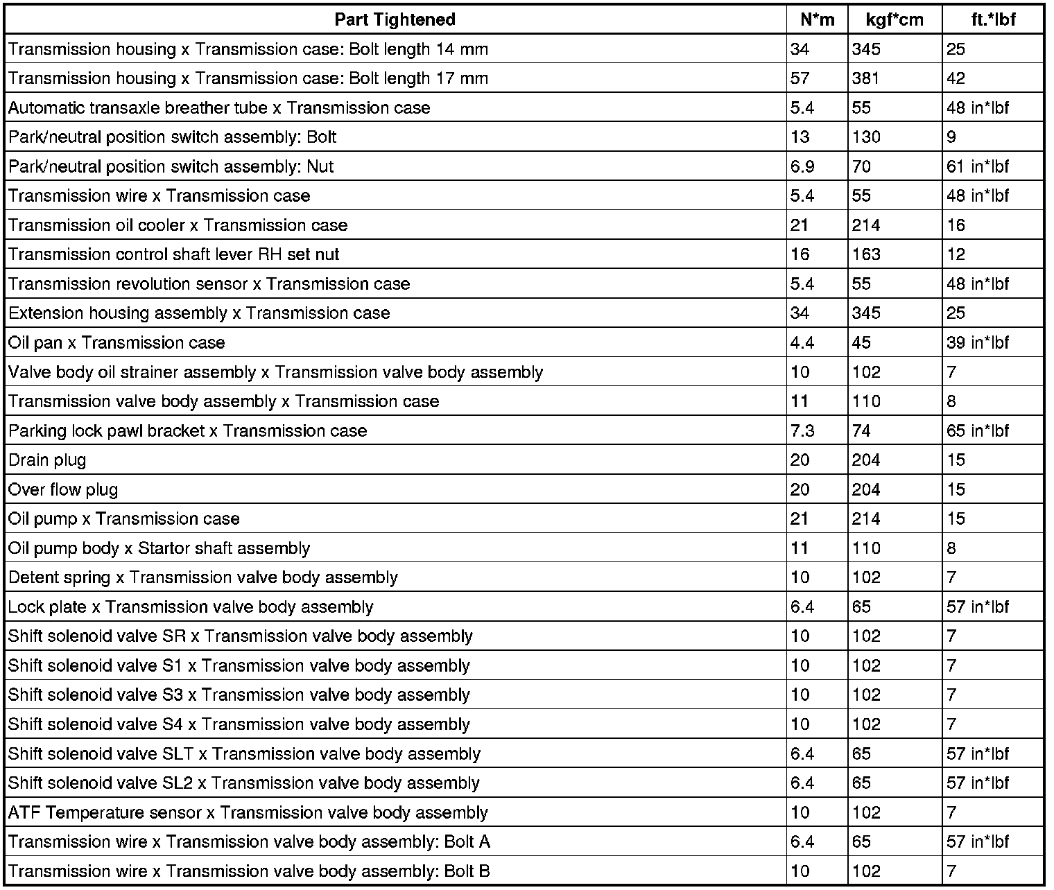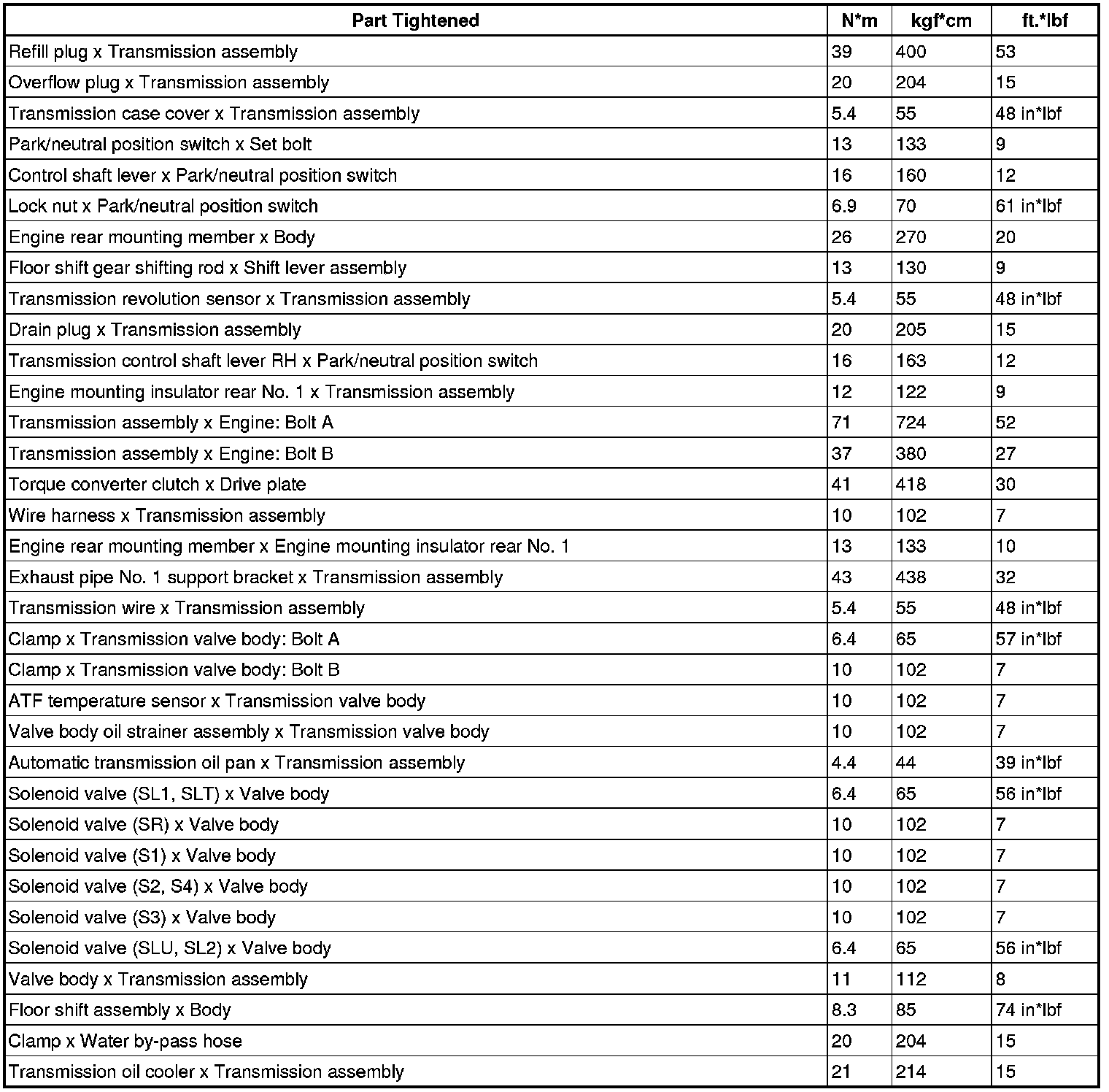 SERVICE SPECIFICATIONS: A960E AUTOMATIC TRANSMISSION: TORQUE SPECIFICATIONS