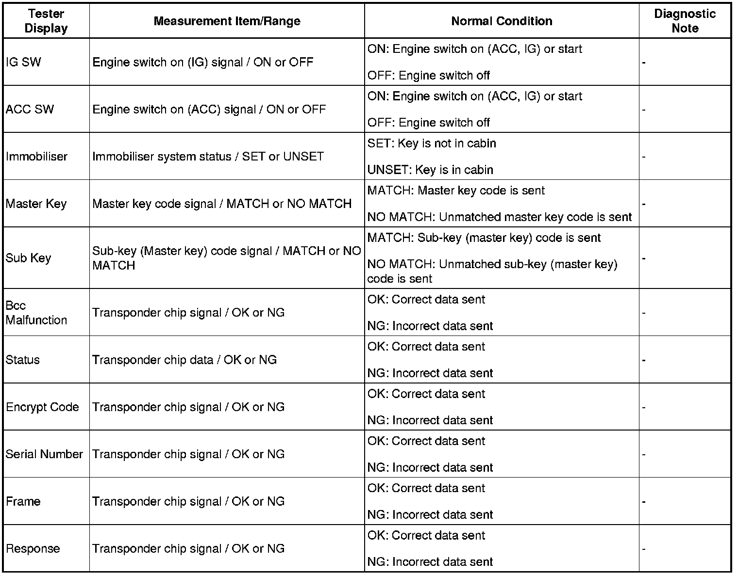ENGINE IMMOBILISER: ENGINE IMMOBILISER SYSTEM: DATA LIST / ACTIVE TEST