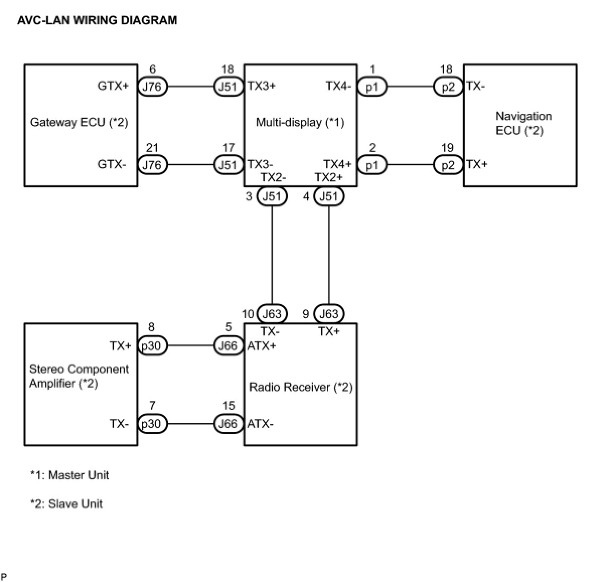 (a) Referring to the AVC-LAN wiring diagram below, check the AVC-LAN circuit between the multi-display and the component shown by the sub-code.