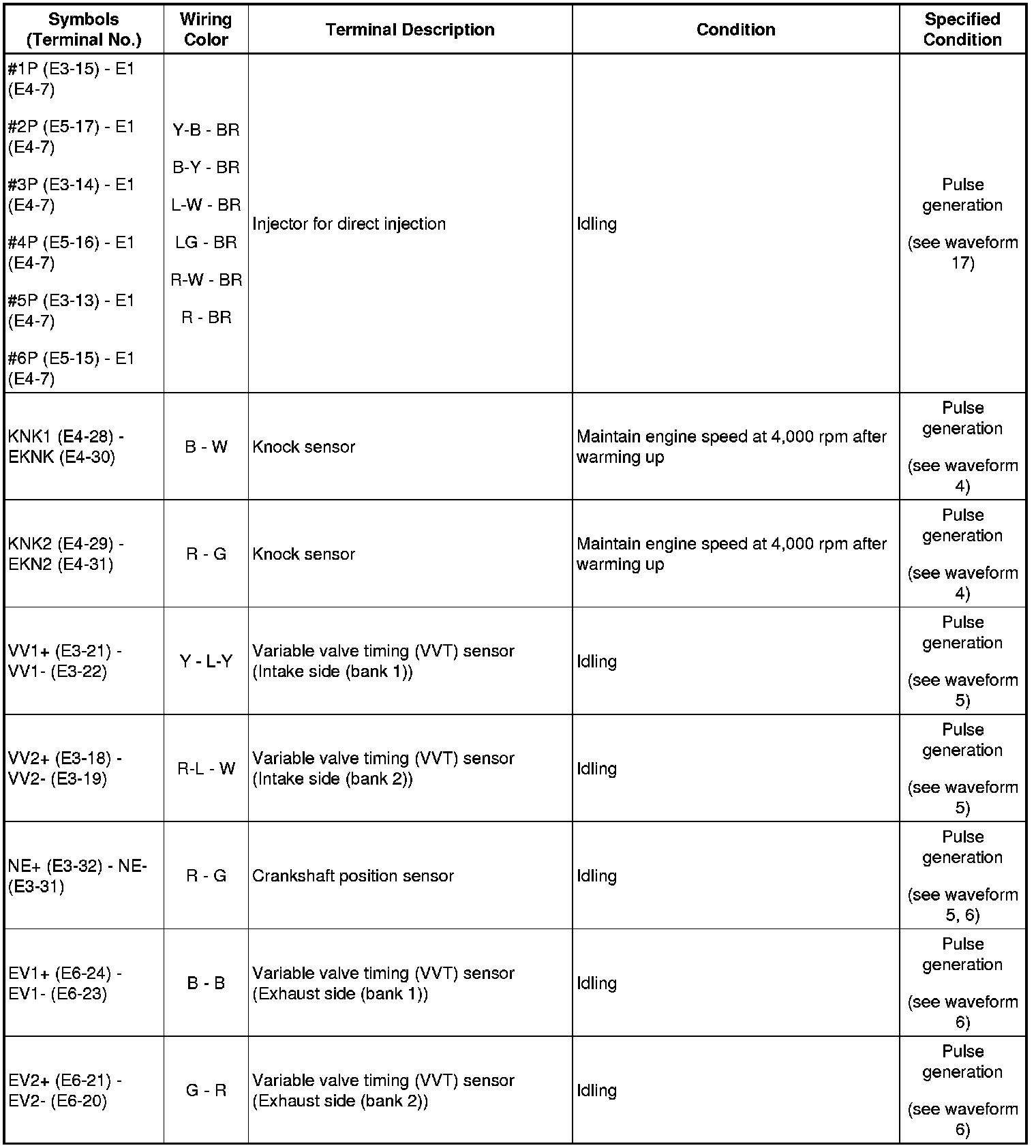 HINT: If the waveform is not similar to the illustration, check the waveform again after idling for 10 minutes or more.