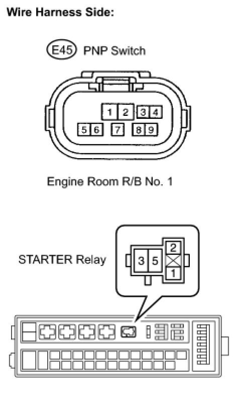 (1) Remove the starter relay from the engine room No. 1 relay block.