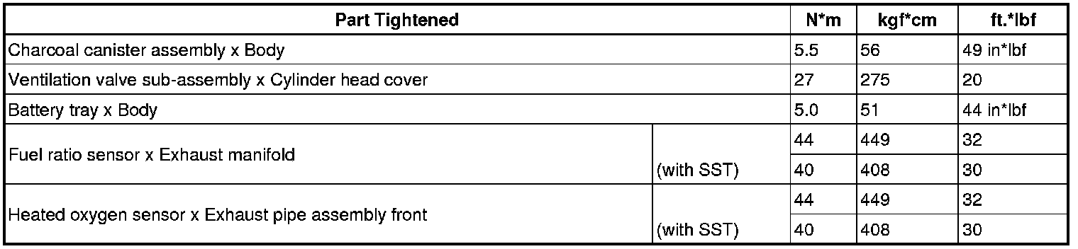 SERVICE SPECIFICATIONS: 2GR-FSE EMISSION CONTROL: TORQUE SPECIFICATIONS