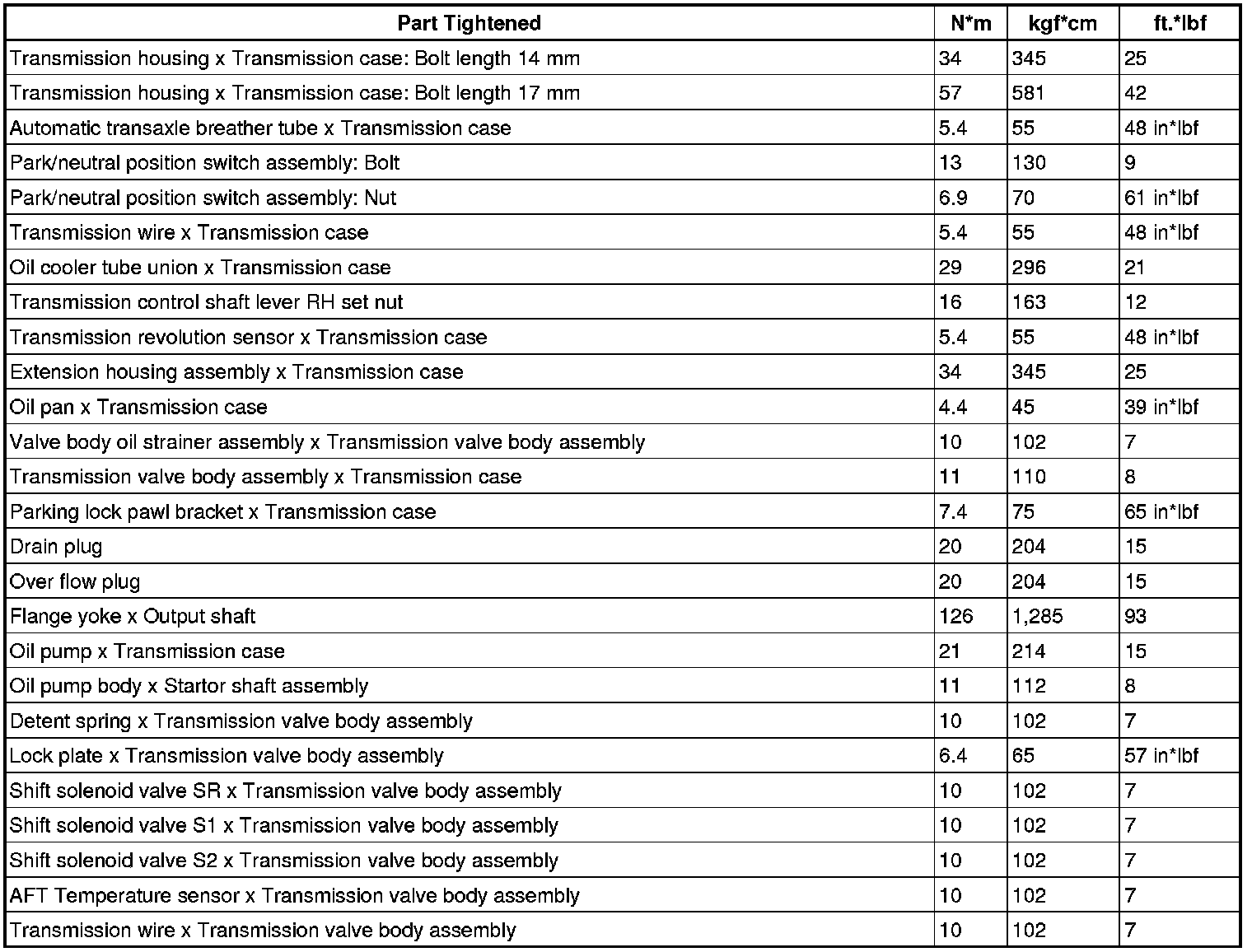SERVICE SPECIFICATIONS: A760E AUTOMATIC TRANSMISSION: TORQUE SPECIFICATIONS