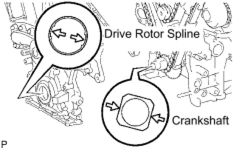 (d) Align the oil pump's drive rotor spline and the crankshaft as shown in the illustration. Install the spline and chain cover to the crankshaft.