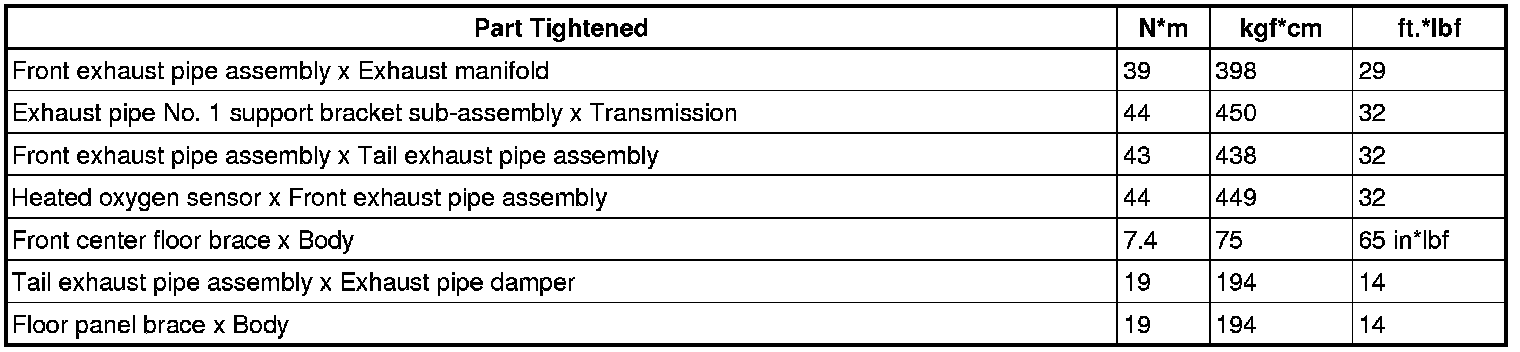 SERVICE SPECIFICATIONS: 2GR-FSE EXHAUST: TORQUE SPECIFICATIONS