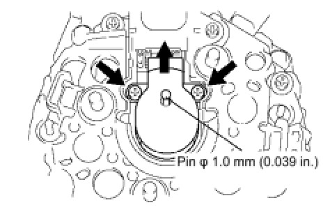 (a) While pushing the 2 brushes into the generator brush holder assembly, insert a dia1.0 mm (0.039 in.) pin into the brush holder hole.
