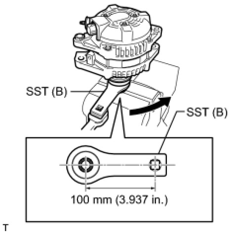 (f) Tighten the pulley by turning SST (B) in the direction shown in the illustration.