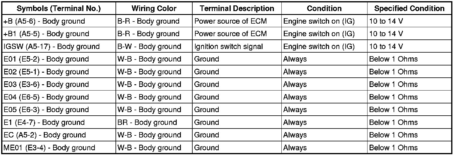 - If the result is not as specified, the ECU may have a malfunction.