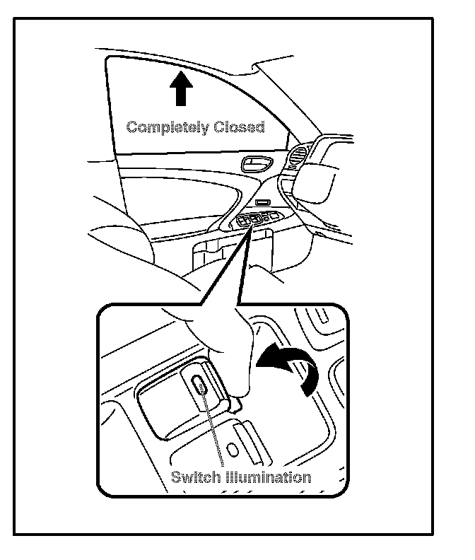 3. Pull up the driver's door power window switch until the window closes, and hold it for more than one second.