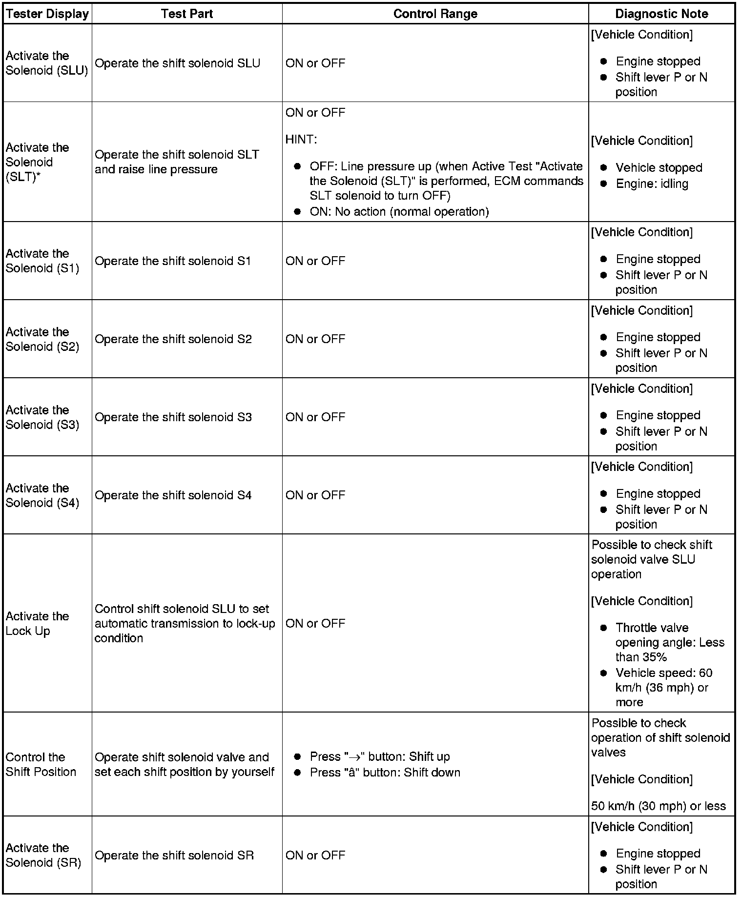 *: "Activate the Solenoid (SLT)" in the Active Test is performed to check the line pressure changes by connecting the SST to the automatic transmission, which is used in the HYDRAULIC TEST Hydraulic Test as well.