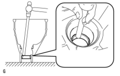 (b) Using a brass bar and a hammer, remove the rear drive pinion rear tapered roller bearing outer race from the differential carrier.