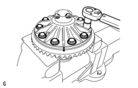(h) After the ring gear has cooled sufficiently, install 10 new ring gear set bolts to which thread lock has been applied.