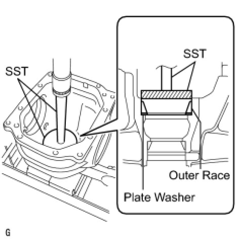 (a) Using SST and a hammer, install the ring gear tooth side case bearing outer race.